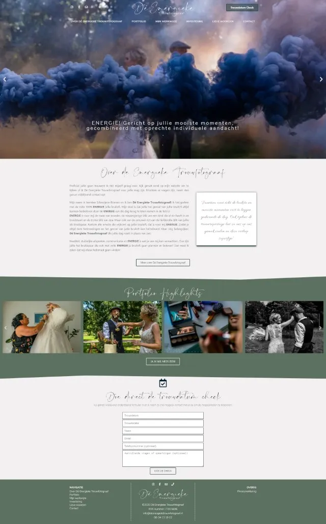 Een startende trouwfotograaf die haar zichtbaarheid en vindbaarheid wilde vergroten. De focus lag op het zichtbaar maken van de portfolio en de drempel zo laag mogelijk maken om contact op te nemen.